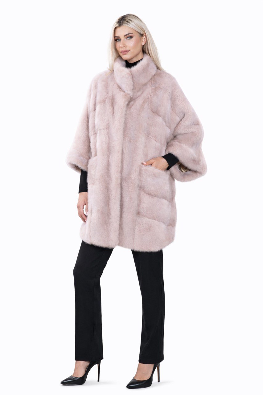 Шуба норкова коротка, пудра фото 6